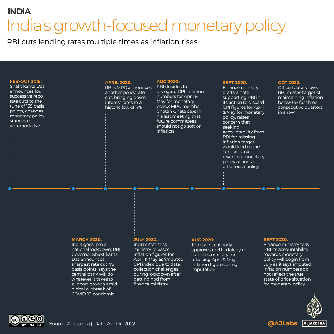 Under the law, the RBI is required to maintain the consumer price inflation at 4 percent – but has some wiggle room with upper and lower limits of 6 percent and 2 percent. If inflation breaches this band for three consecutive quarters, it is legally considered RBI’s “failure”. Lower interest rates lead to more money in the economy, which in turn leads to inflationary pressures. The central bank reigns in inflation by adjusting the interest rate.