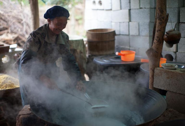 “Only old ones stay here,” he says. They still work in the fields, cultivating sugarcane and maize. Farmers can sell a ton of sugarcane for 450 RMB ($72) – a 13 percent drop from last year’s prices, which shocked most of the village’s farmers. “It’s a hard place to live,” Qi adds.