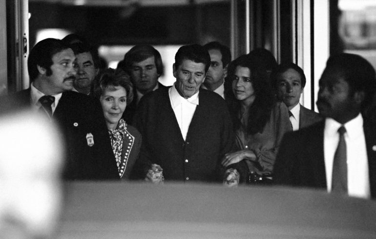White House spokesman David Gergen told reporters shortly after the assassination attempt that “the president walked into the hospital” under his own power. Presidential adviser Lyn Nofziger said the president was conscious and in stable condition. The next day, Vice President George HW Bush said he had visited Reagan and that “his cheeks are rosy … He looks robust.”