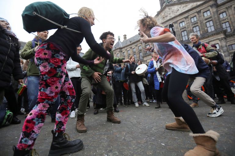 In Amsterdam, several thousand protesters showed up for a march around the city’s central Dam square, despite one group having cancelled their rally because of the previous night’s violence.