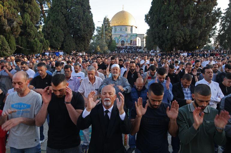 Hundreds of worshippers have attended Eid prayers at the Al-Aqsa Mosque compound in Jerusalem’s Old City, Islam’s third holiest site.