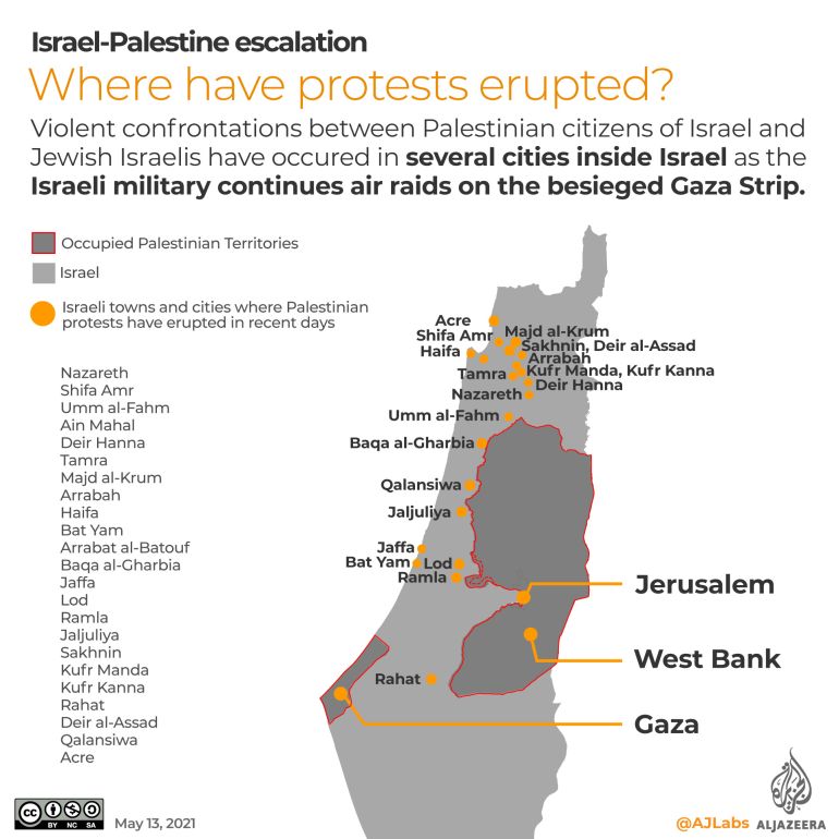 There have also been more violent confrontations between Jewish Israelis and Palestinian citizens of Israel in several cities inside Israel.