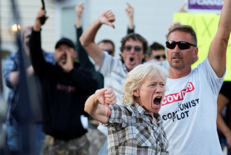 Montreal, Canada – Throngs of angry protesters, hurling epithets and denouncing coronavirus vaccines and lockdown measures, are becoming a fixture at Canadian Prime Minister Justin Trudeau’s election campaign stops.