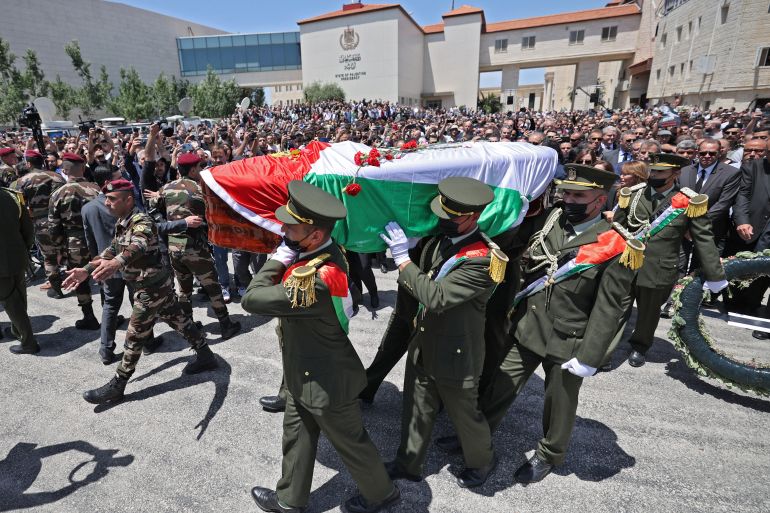 President Mahmoud Abbas honoured Abu Akleh and bid her farewell at the compound, where a large procession by the national guard was also held.