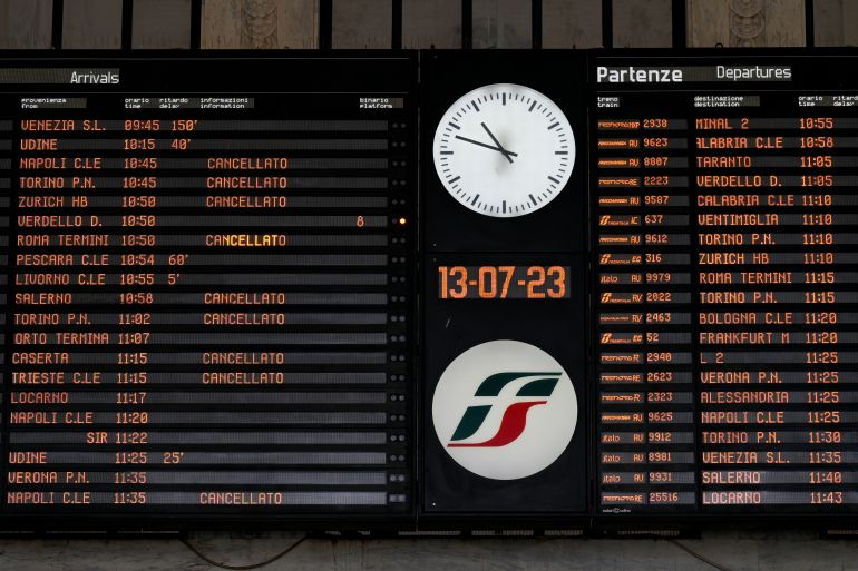 National carrier ITA said it cancelled 133 flights, most of them domestic but a few were to European destinations such as Madrid, Amsterdam and Barcelona.