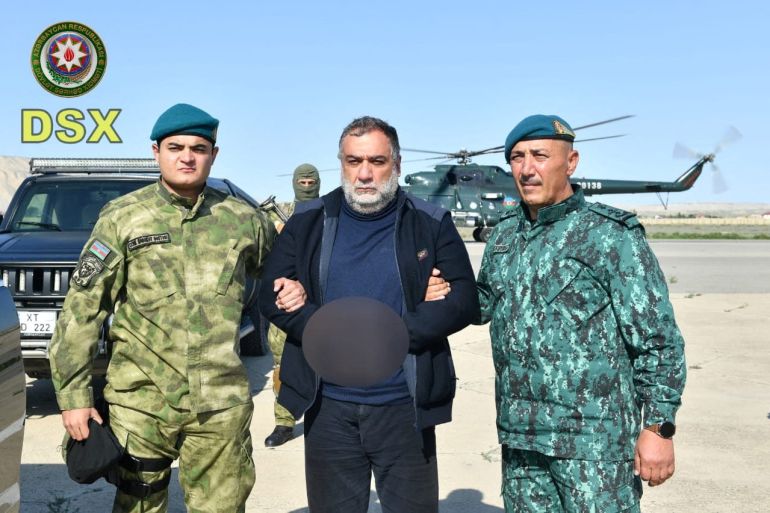 Azerbaijan has arrested the former head of Nagorno-Karabakh’s separatist government as he tried to flee into neighbouring Armenia along with tens of thousands of others who fled the region following Azerbaijan’s military operation last week.